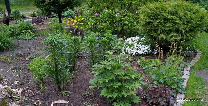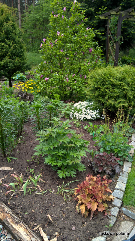 Część rabaty zdążyłam wysypać korą a te cholery prawie wszystko mi zmieliły z ziemią