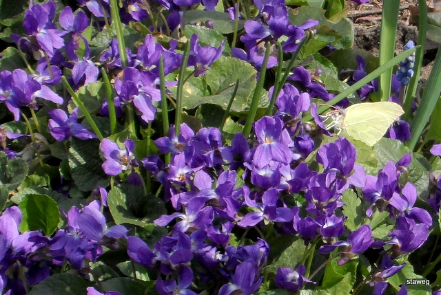 przyleciały pierwsze motylki. Na tle fiołka ładnie się odcina cytrynek.