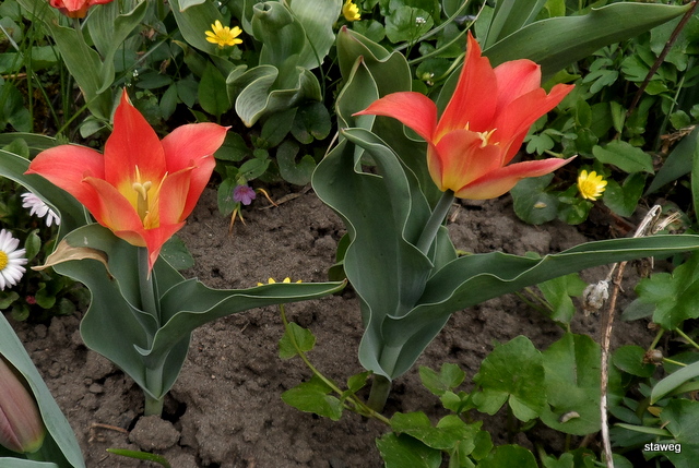 Nie ma czasu do stracenia. Coraz więcej gatunków rozkwita, zwłaszcza tulipanów botanicznych. Np. Tulipa tarda - wczoraj nic nie pokazywało się wśród liści, a dziś: