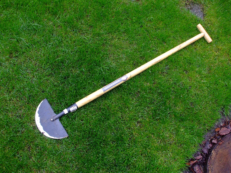 Przerwa w deszczu, więc szybko zrobiłam zdjęcie szpadelkowi do równania trawników. Widziałam go już kilka razy w działach narzędzi ogrodniczych. Chyba nie ma problemu z zakupem tego ustrojstwa a naprawdę warto go mieć.