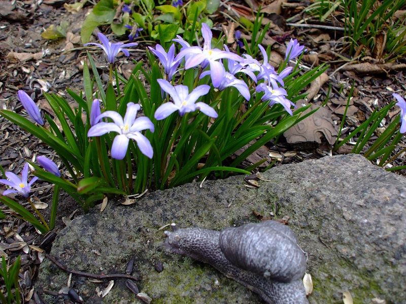 Poll ten ślimak to leniuch nad leniuchami. Upodobał sobie ten kamień i od paru lat się nie rusza . :) U mnie nie ma na szczęście ślimaków-golasów a na muszlowe pewnie jeszcze za wcześnie.