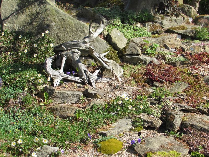 Znajdują się tu kolekcja wielu gatunków, odmian rzadko spotykanych w kraju roślin skalnych.