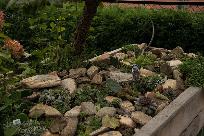 Zasiedlony Rojnikowcem łuskowatym 'Chinese Hat', to roślina "sukulentowa" pochodząca z Japonii
