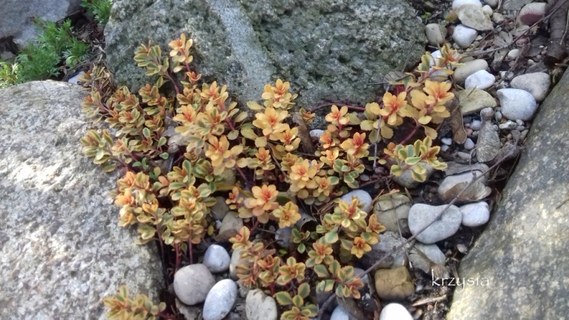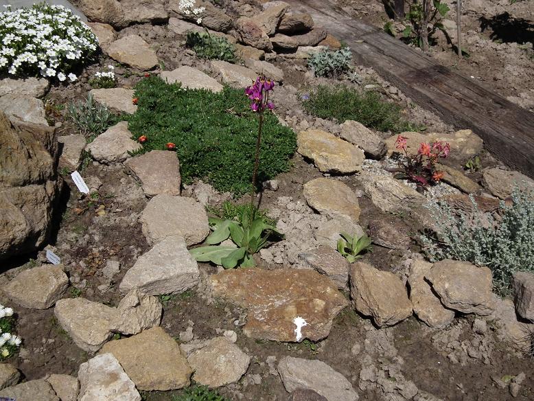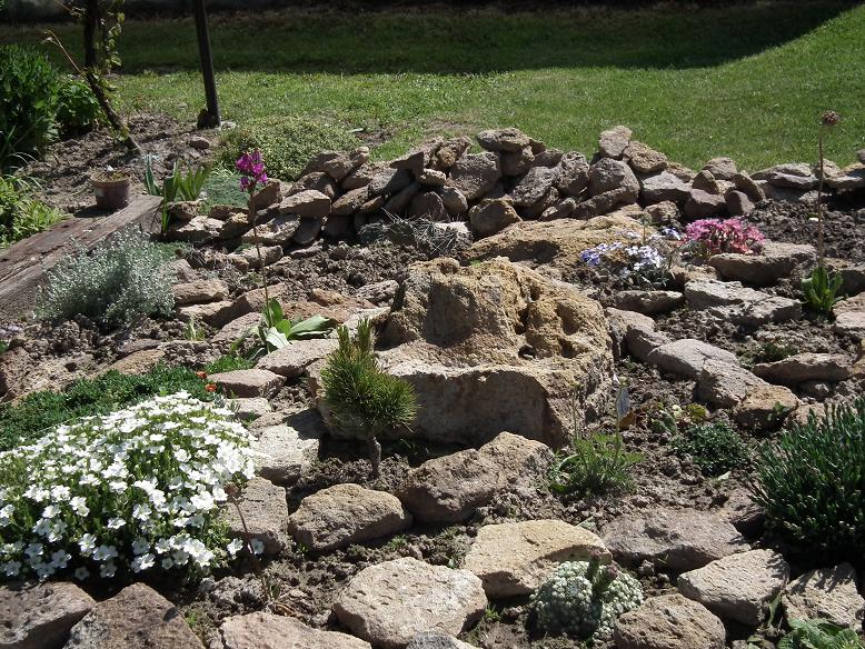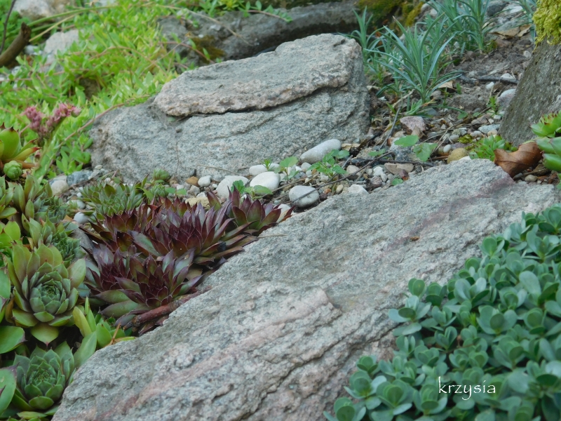 Na razie pojedyncze roślinki, na poduchy trzeba poczekać, nie ma rarytasków, mało kwitnących, to ma być skalniak bezobsługowy 2smiech .