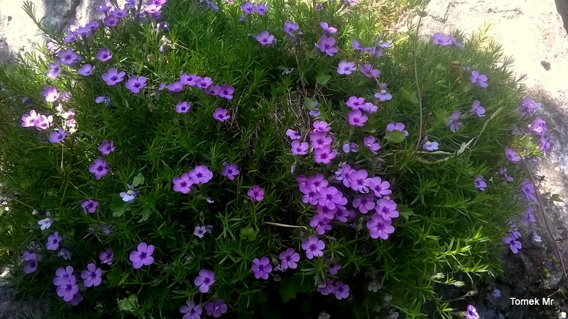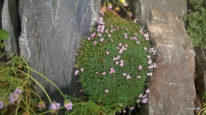 Mego skalniaka prawie nie podlewam, co prawda w tym roku natura podlewa, choć dość skutecznie osłania go brzoza, a ziemia uboga i kamienie polne, nie bardzo sprzyjające roślinom skalnym, mimo to nieźle przyrosły przez lato.
