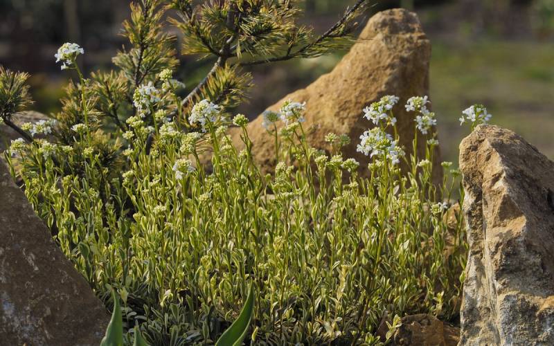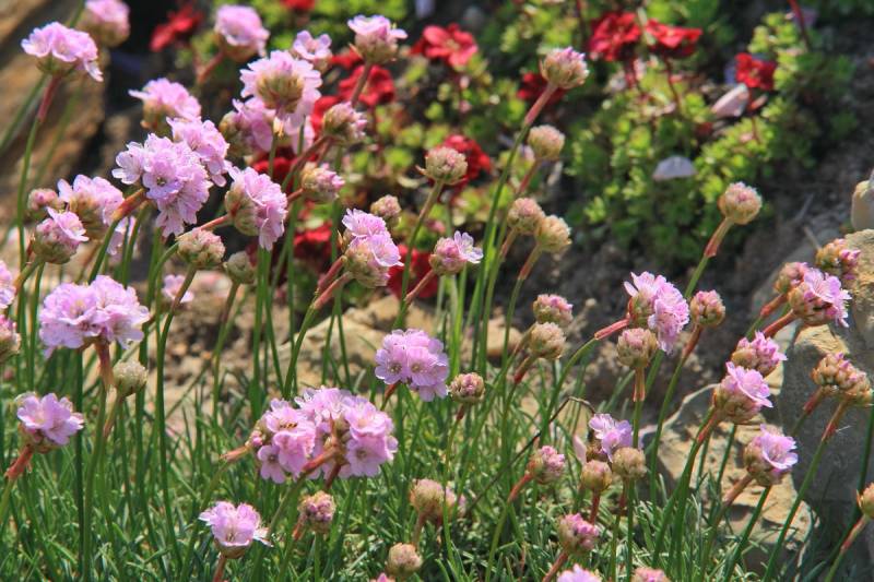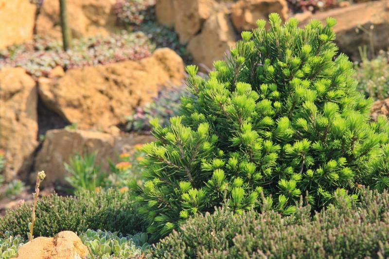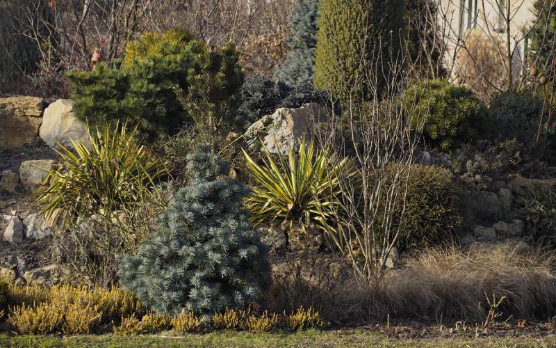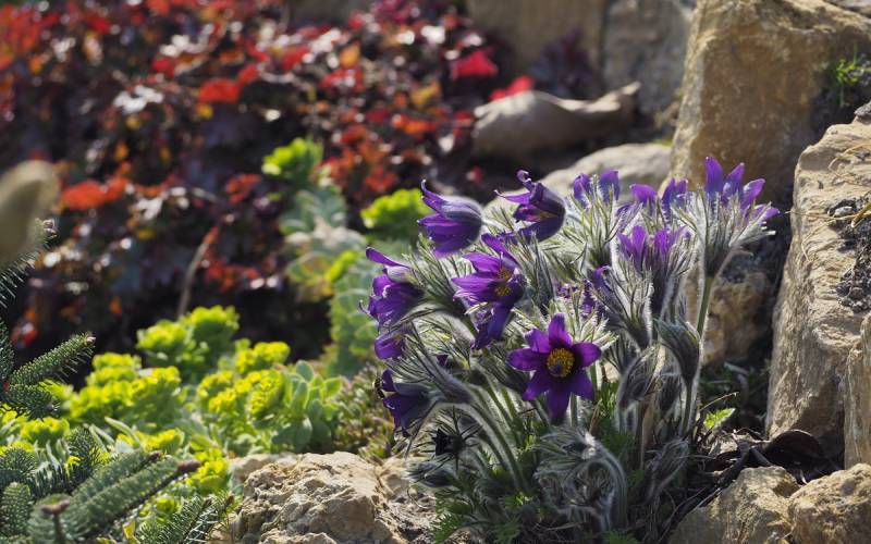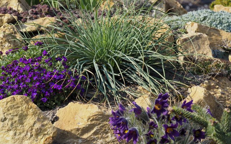 Beato kolorowe głazy fajnie kontrastują z roślinami i nie zlewają się z podłożem. Przez to ogród skalny zyskuje na wyrazistości.