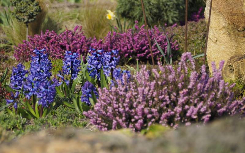 Dzisiaj na skalniaku było całkiem kolorowo, zakwitło trochę roślin cebulowych, a i wrzośce nadal kwitną . Może nie są to rośliny typowo skalne, ale w tym roku do ogrodów skalnych właśnie wrzośce polecam