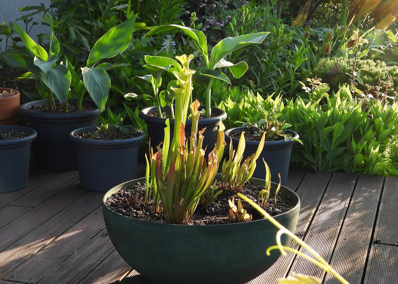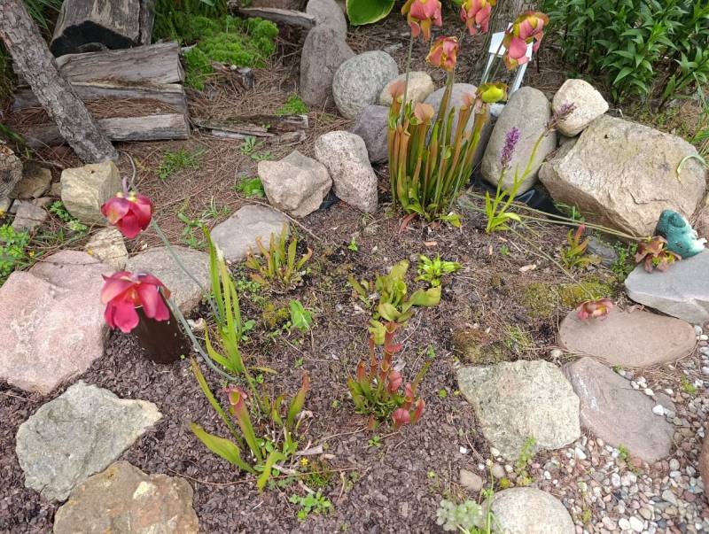 Kapturnice, rosiczki i inne roślinki w moim mini torfowisku