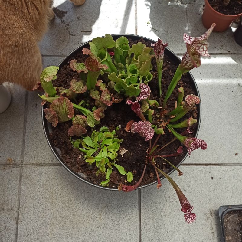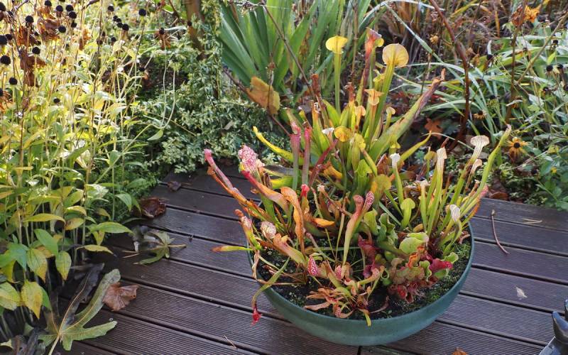 Wojtek to bardzo dobrze przezimowały Ci kapturnice w tej donicy i nawet rosiczki, które u mnie w bagienku po każdej zimie się nie budzą
