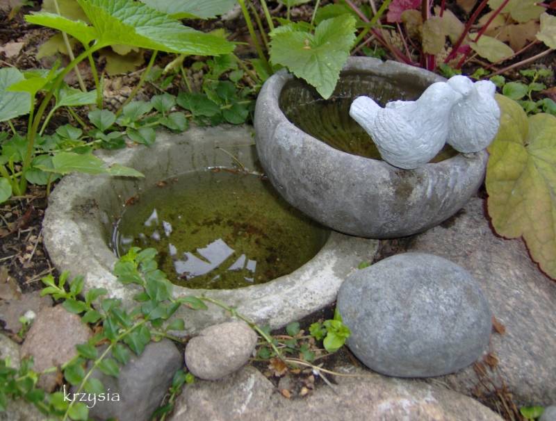Zaletą jego jest zawsze czysta woda, brak owadów które przyciąga woda i doskonały wodopój dla ptactwa.