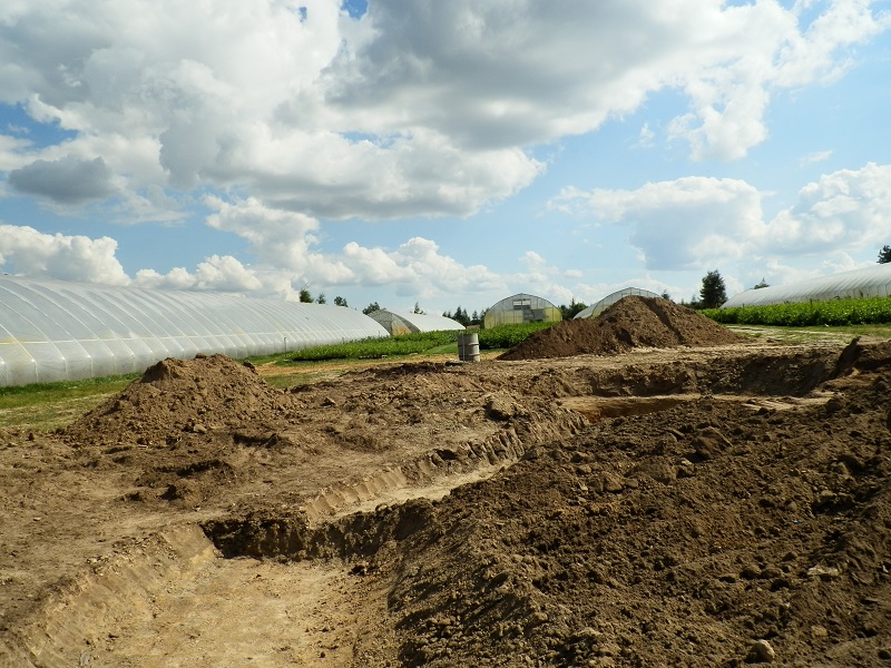 Gotowy wykop należy oczyścić z kamieni, korzeni i innych ostrych przedmiotów a następnie można lekko podsypać przesianym piaskiem lub wyłożyć włókniną lub flizeliną jak na zdjęciu poniżej.