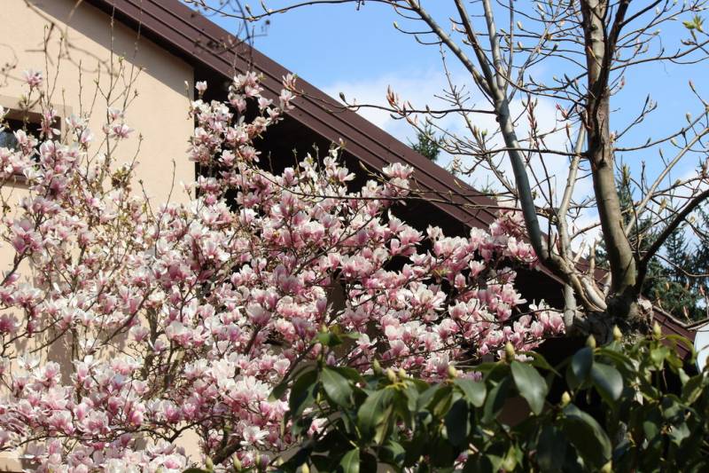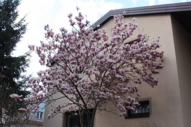 Ewo, dziękuję. Potrafi nam dostarczyć sporo radości, ale i stresu podczas wiosennych przymrozków również. Jest wcześniejsza od drugiej naszej magnolii, Susan. Ta kwitnie zazwyczaj już w bezpiecznym okresie, ale oczywiście mniej spektakularnie.