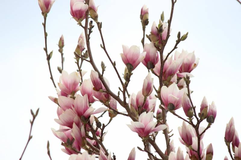 Kwiaty magnolii coraz bardziej rozwinięte, niektórym płatki zaczynają już opadać, niestety.