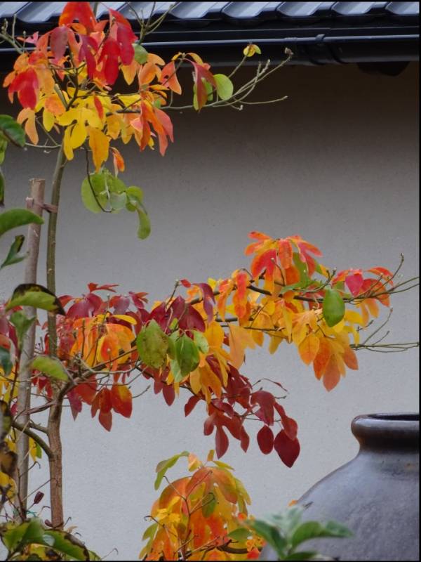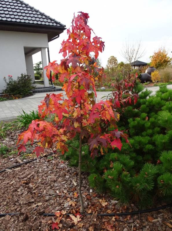 Młodziutki ambrowiec oberwał dzisiejszej nocy od przymrozku i zaczyna gubić już liście. Szkoda :(