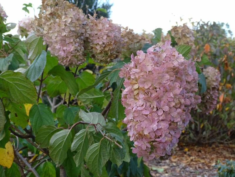 Edyto, porąbana ta tegoroczna jesień, została jedna hortensja do przesadzenia i czy to nie jest złośliwość z jej strony. Inne prawie bez liści, a ta jak na złość - zakwitła po raz drugi i ani myśli zrzucić liści by ją ruszyć z miejsca :angry: