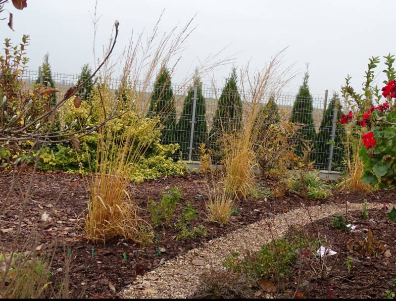 Dzisiaj dojechał kolejny transport przekompostowanej kory, więc do południa uzupełnialiśmy miejsca w ogrodzie gdzie już było jej mniej.