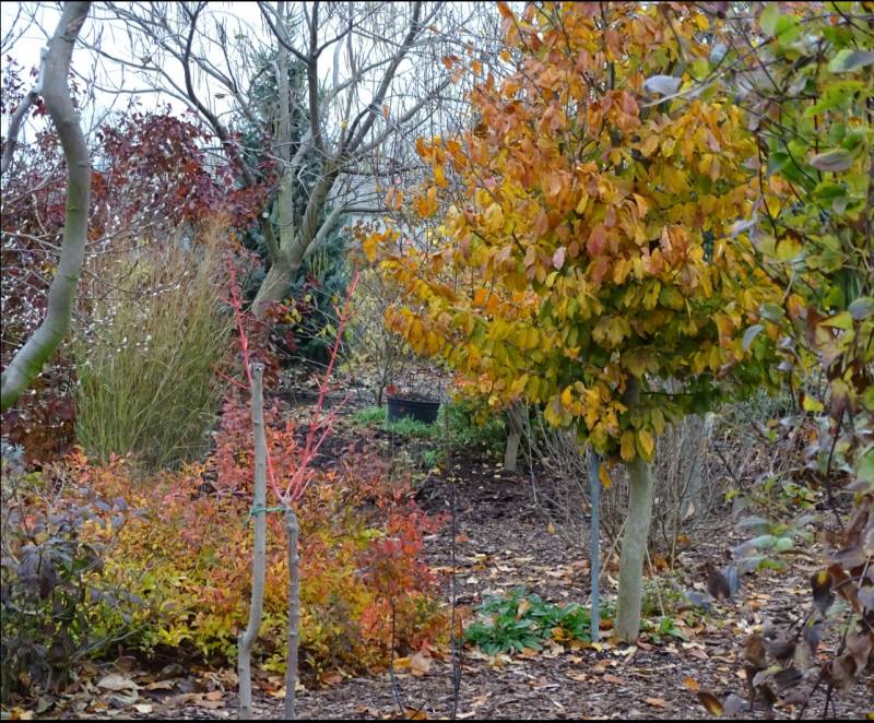 Trzmielina oskrzydlona "Blade Runner" nie przebarwia się zbyt spektakularnie jesienią, za to po opadnięciu liści czaruje szerokimi listwami i ciekawymi owocnikami......... :)