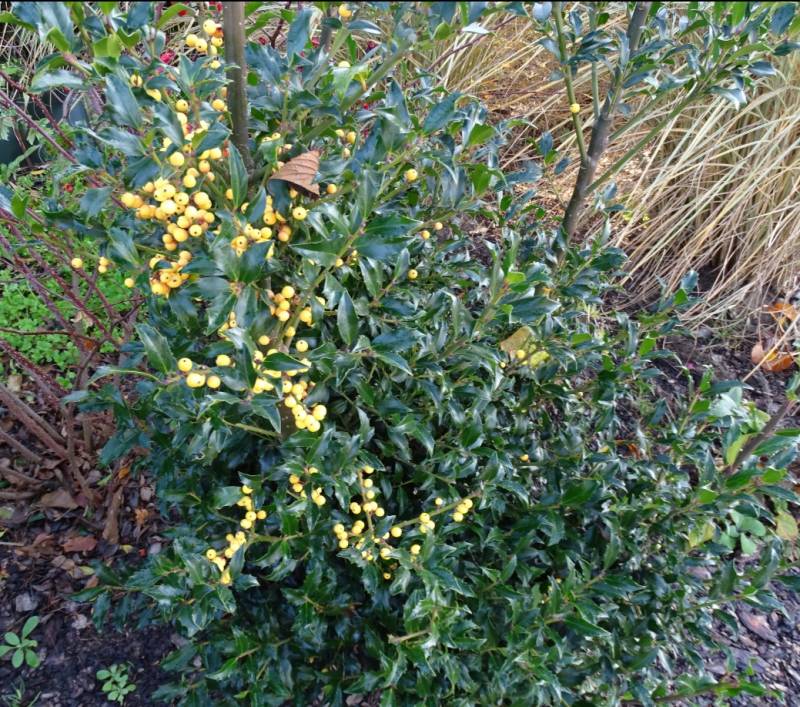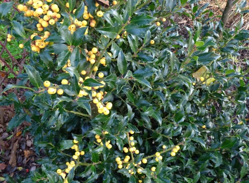 Wiesiu, poszperałam i znalazłam nazwę tego ostrokrzewu z żółtymi owocami