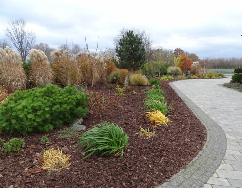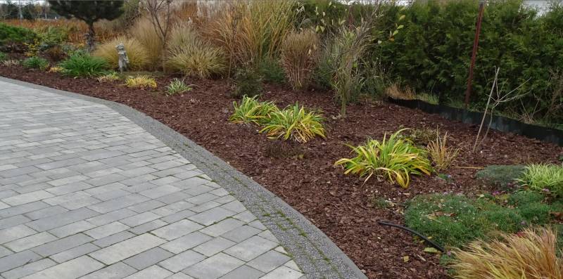 Wczoraj zakończyliśmy korowanie ogrodu - trzeba było dokupić następny transport kory i szybciutko (w dwa dni) wykończyć rabatę przy wjeździe.