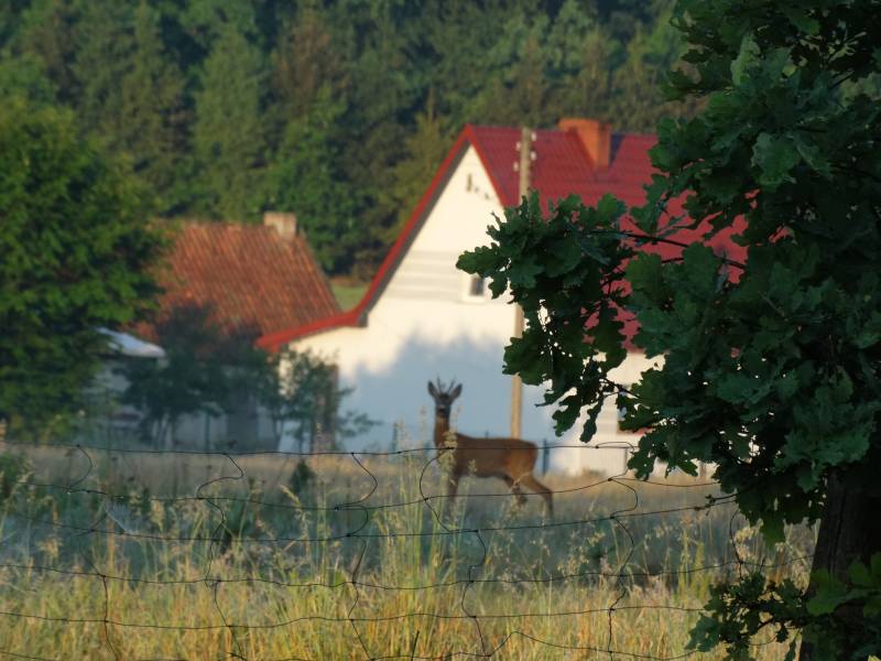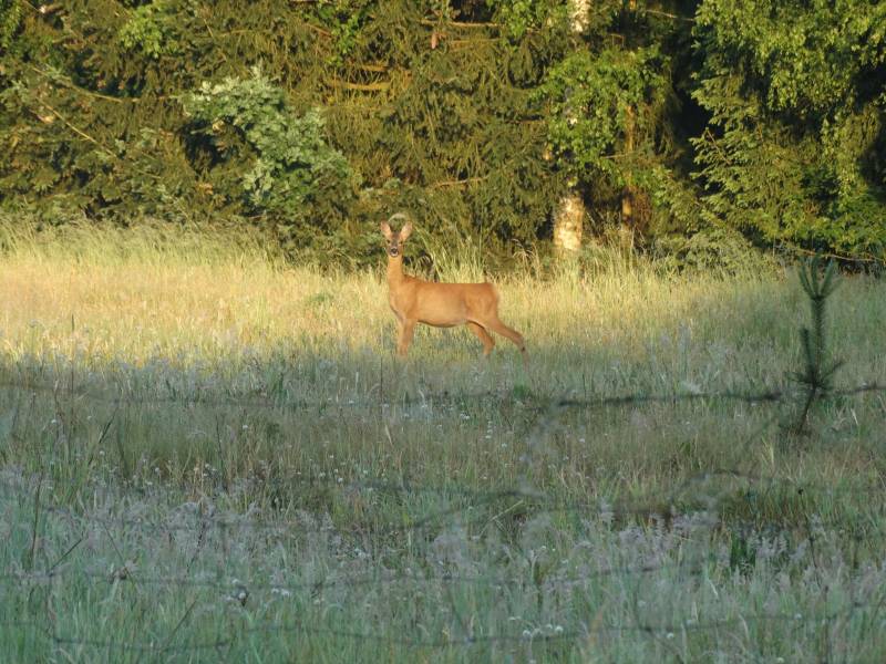 Wydawało się, ze tylko brakuje tu sarenek, ale nie, jednak są, dopiero co przeskoczyły ogrodzenie, słodka para rogasi, amatorów trawy łąkowej