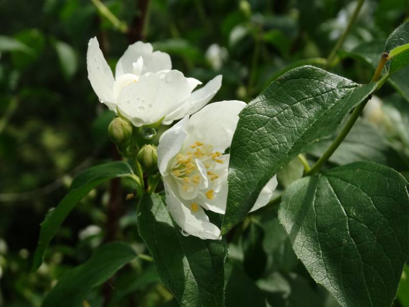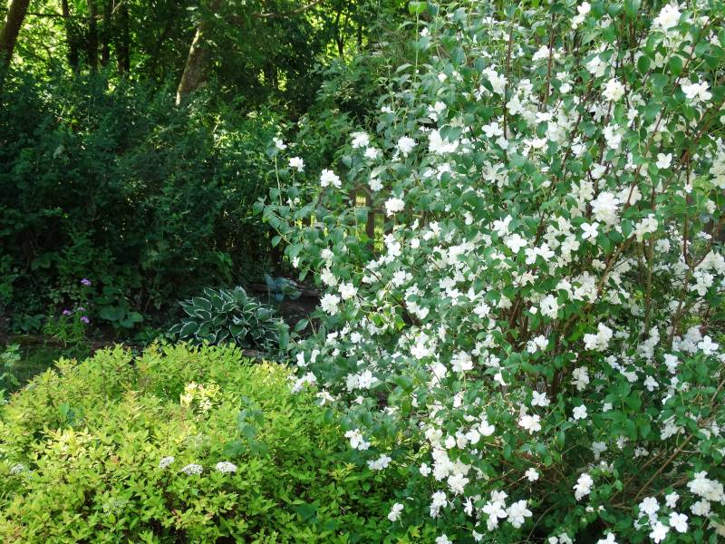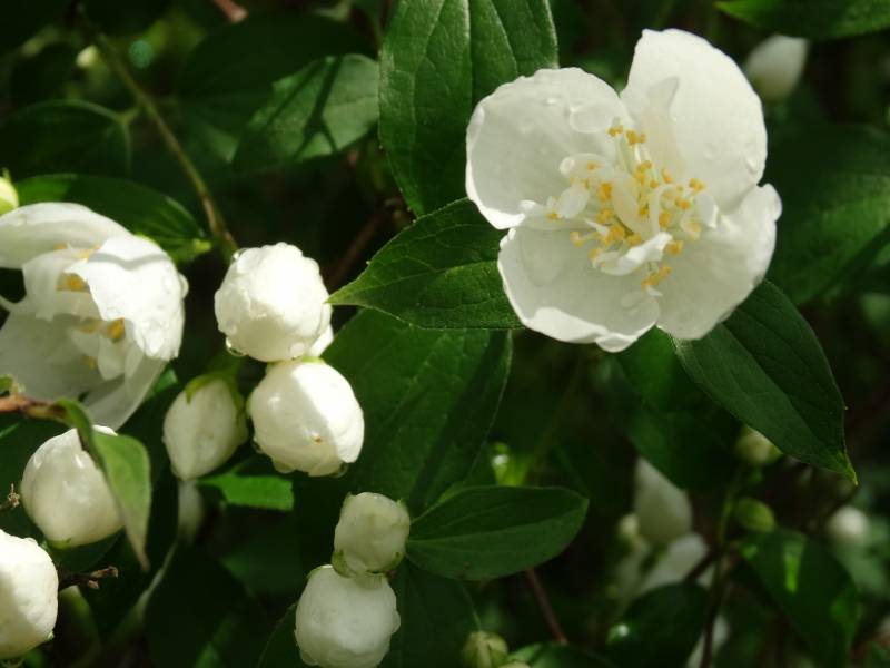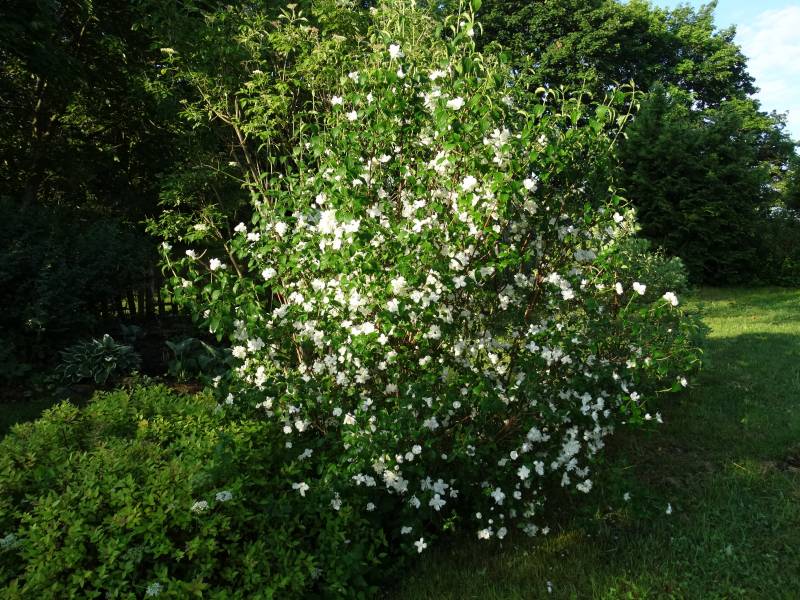 Małe radości, jaśminowiec, jest coraz większy i pomimo, że przynajmniej polowa pąków kwiatowych opadła to i tak jest piękny