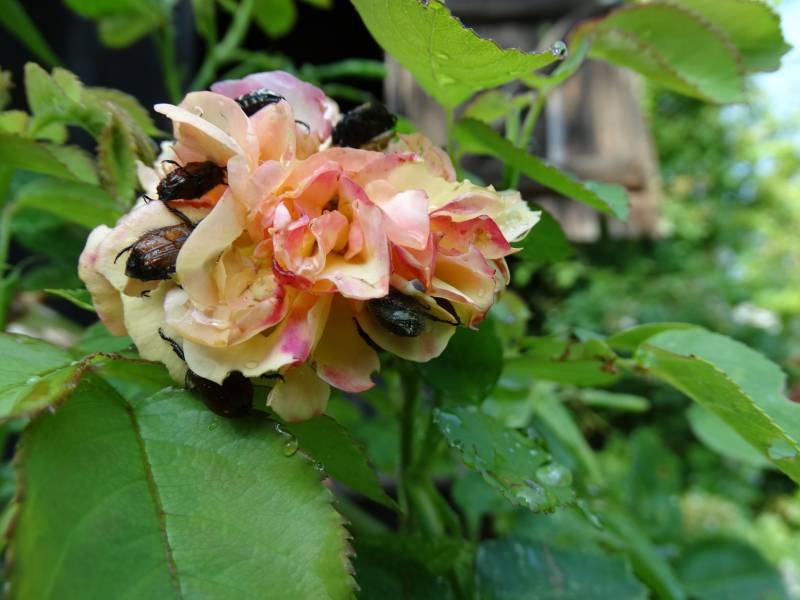 Maju moje róże się nie zregenerowały dobrze, kwiaty są pokurczone, jeśli w ogóle pąki nie opadły. 0flaga Ten rok różany spisałam na straty., a jak się jakiś kwiatek w miarę kształtny pokaże, to szybko zrobię mu zdjęcie. Żuki dobijają ostatnie kwiaty, które się uchowały.