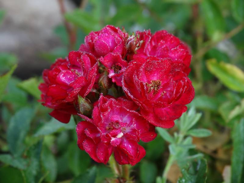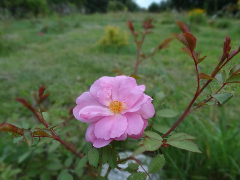 Róża Drift Red, jedyna z łączki, która pięknie zakwitła pomimo srogiej zimy, która zniszczyła wszystkie części nadziemne róż, pomimo przymrozków i upałów w kwietniu i kolejnych przymrozków przeplatanych z brakiem opadów. Nie dobiło jej gradobicie i nawet sarenki jej nie znalazły i nie obgryzły. Widać niesmaczna.