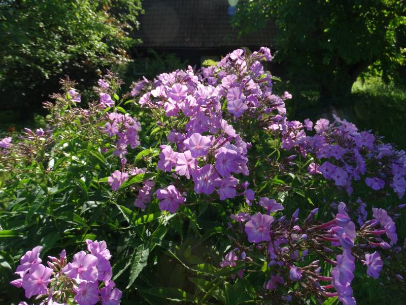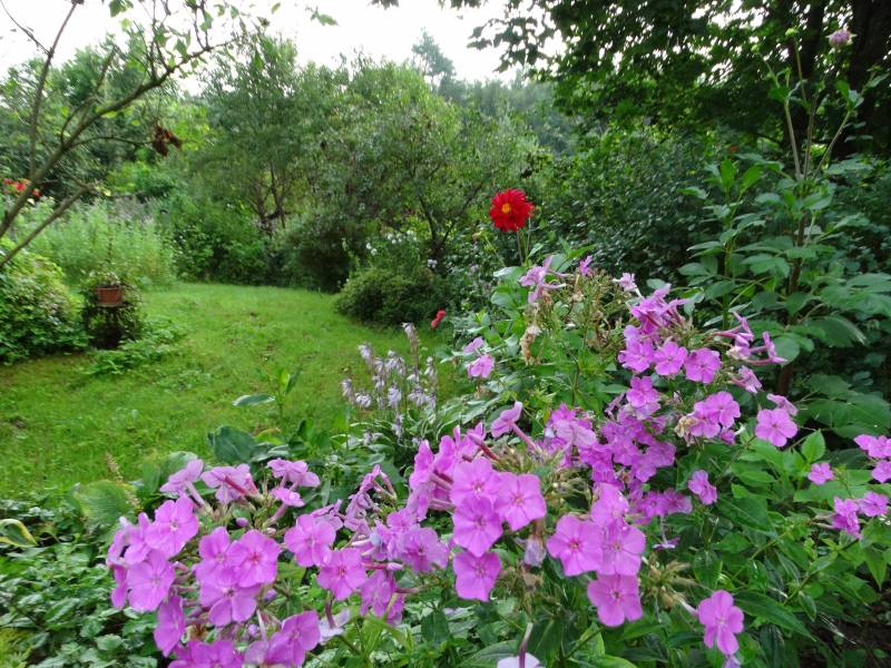 Floksy wiechowate Elisabeth Arden, najstarsze w ogrodzie i wytwarzają największe kępy