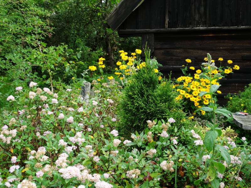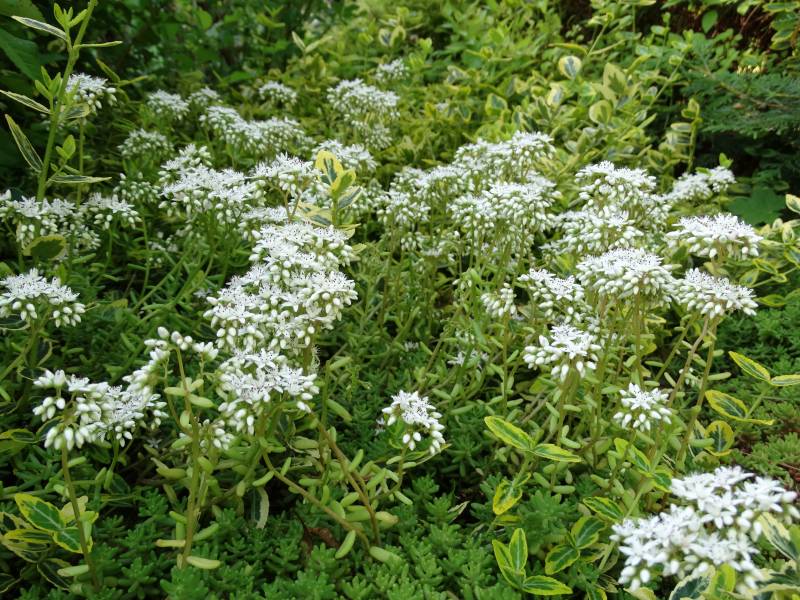 Kwitnące rozchodniki, zawsze dylemat, ile pędów zostanie, bo kwitnące zamierają, a zbierały się do kwitnienia długo, by dać taki efekt. Czasem to może być ostatni rok ich bytności w ogrodzie.