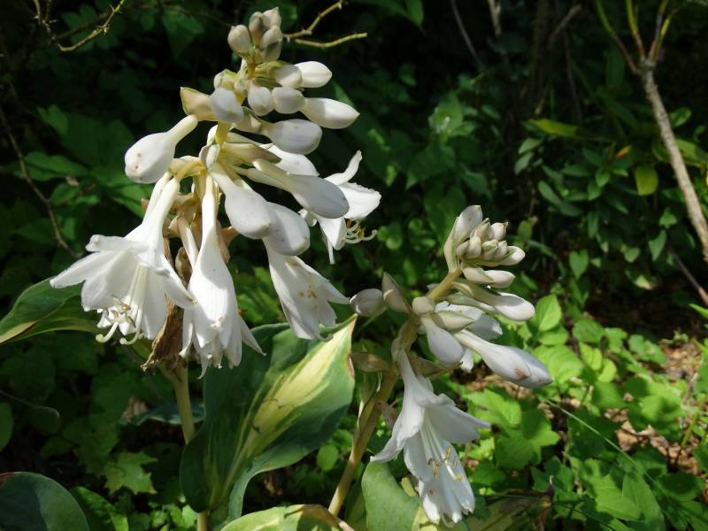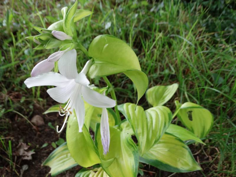 Kwiaty hosty Montana Aureomarginata, ta od Ewy ze spokojnej :przytulam Listki mocno zniszczone gradobiciem