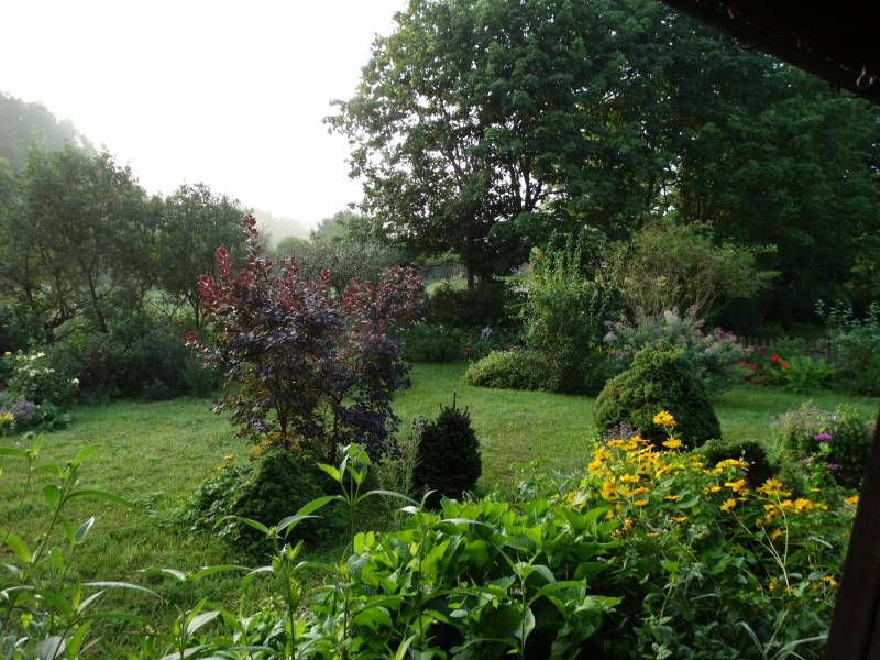 Widok z innego okna daje obraz sytuacji, ogród żyje swoim życiem, czy coś się uda, czy nie w danym roku