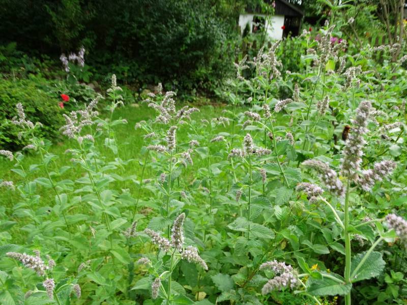 jeszcze wam nie pokazywałam tegorocznej mięty, straszne ma kłącza, ale smak wyborowy i bzyki :owady mają przy pogodzie używanie całymi dniami. Będzie więcej miejsc z miętą w innych częściach ogrodu.