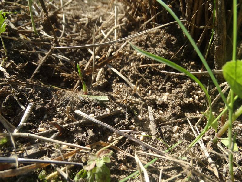 Trawy na mrowiskach mają się dobrze, ale oczywiście usunęłam zeschnięte pędy, a mrówki błyskawicznie się ewakuowały wraz z jajami, że tak powiem.
