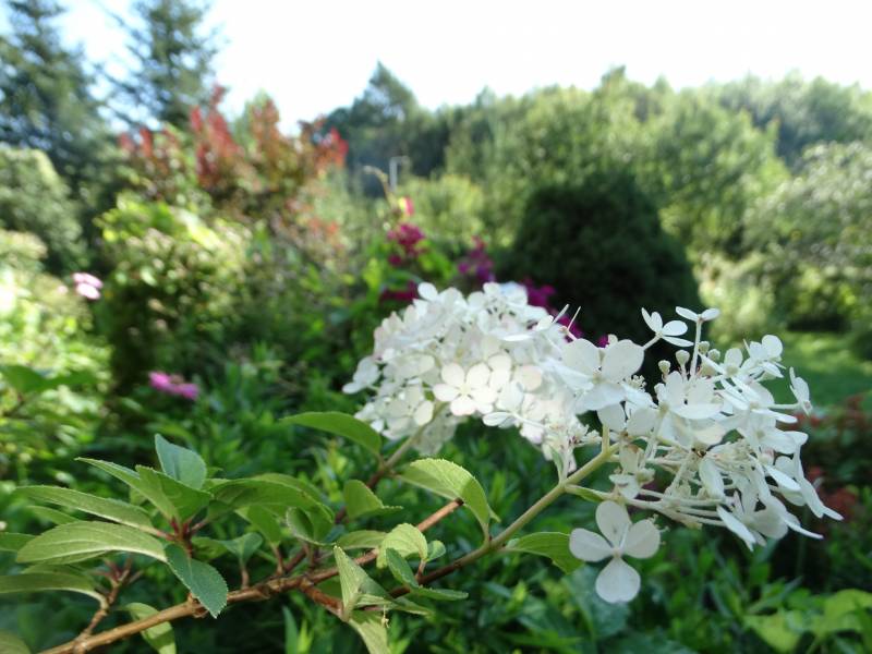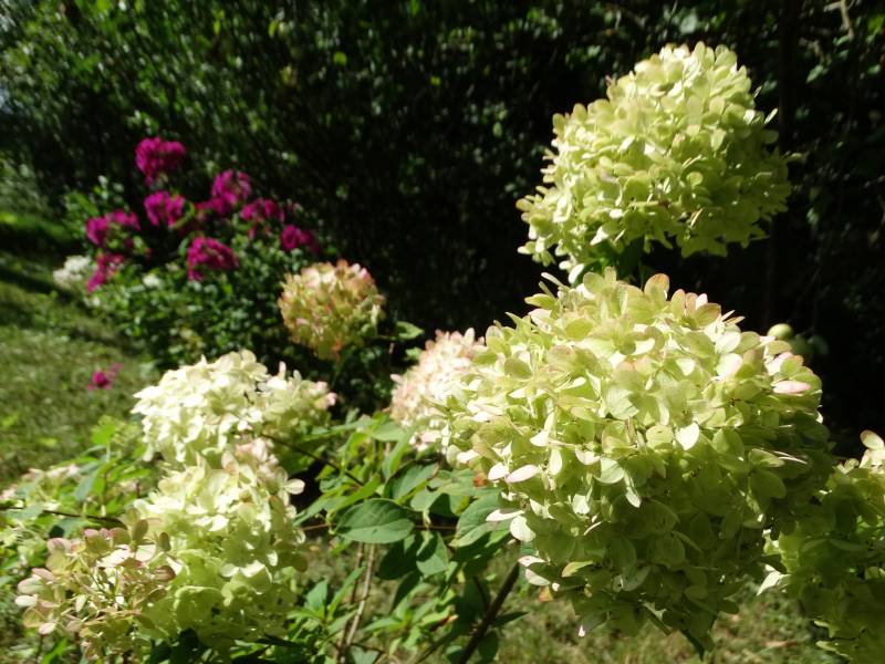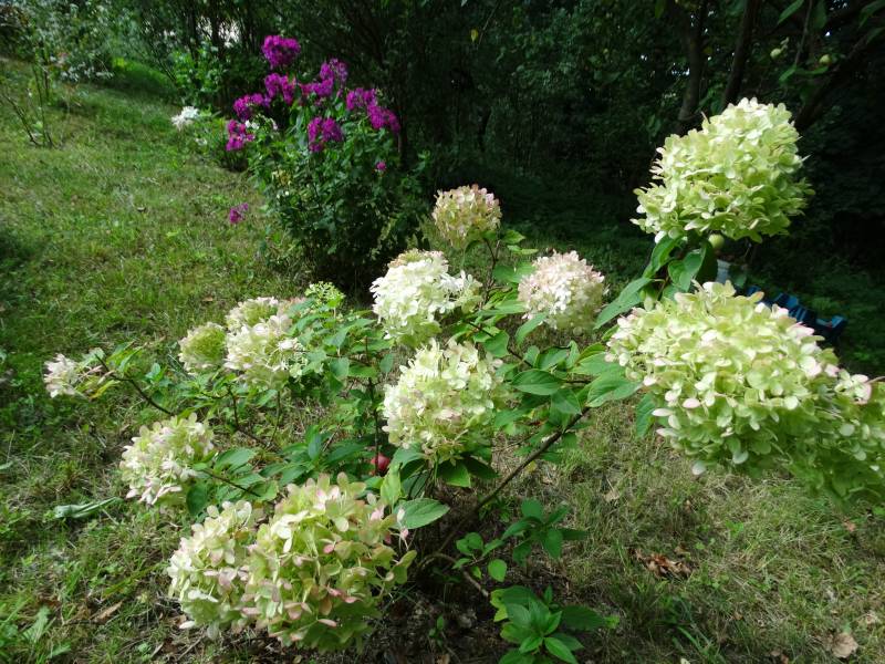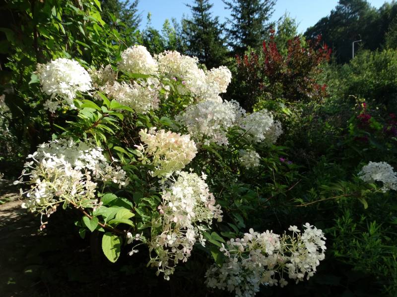 Hortensja Living Bobo, czy tez Bobo, długo cieszyła bialutkimi kwiatami, które teraz zaczynają się przebarwiać.