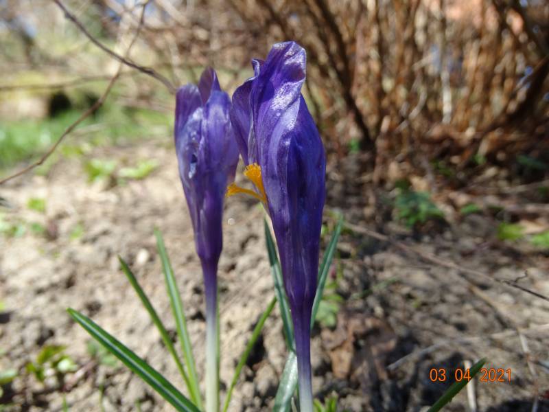 i dzisiaj te same oszukańcze krokusy, w realu są fioletowe, tzn moje oko widzi fioletowe i jakieś takie metaliczne i pogięte. Data w aparacie jest też oszukańcza, zdjęcie robiłam dzisiaj zaraz po południu