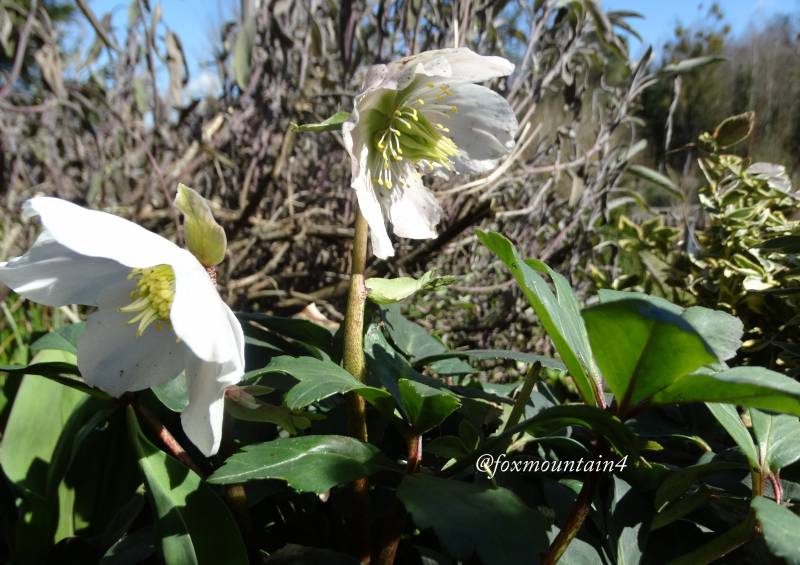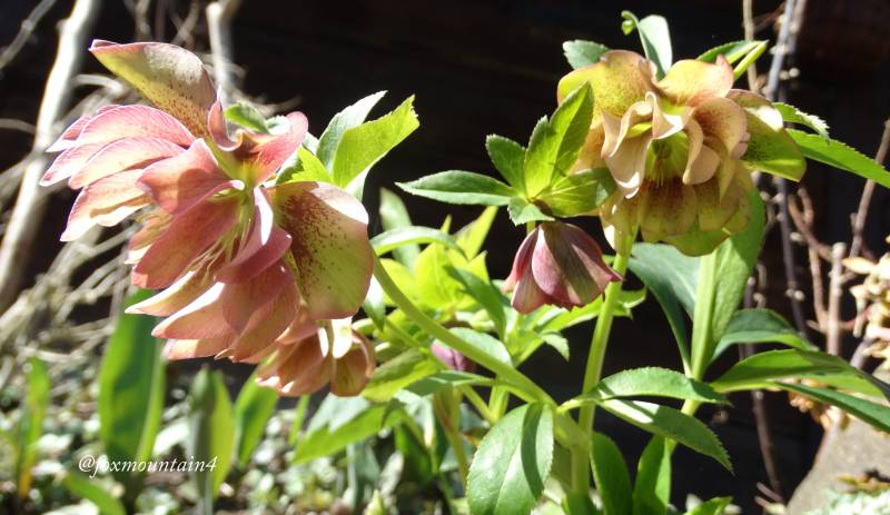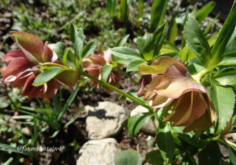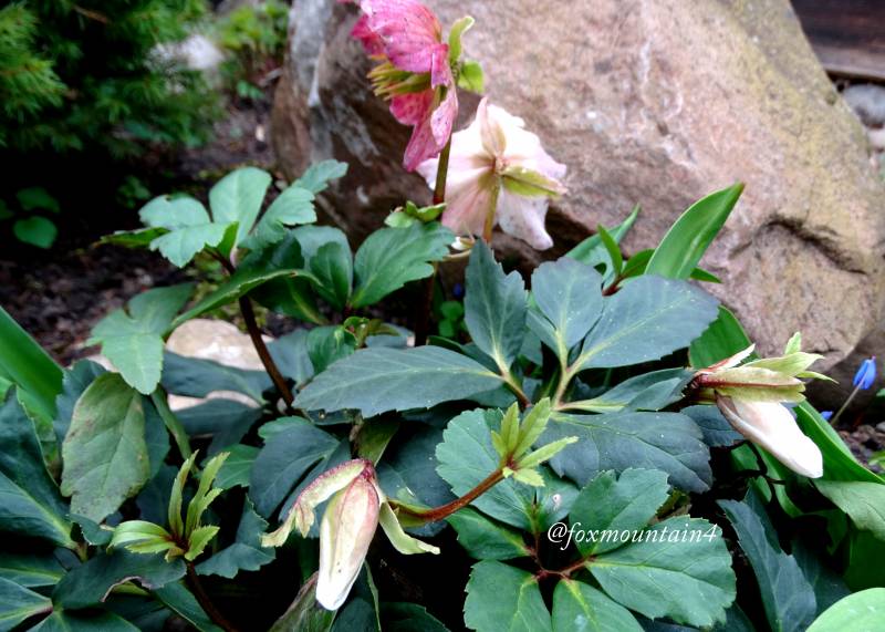 Pędy z pąkami ciemiernika białego wyskoczyły w jeden dzień, starsze kwiaty wybarwiają sie na różowo, tego jeszcze nie robił.