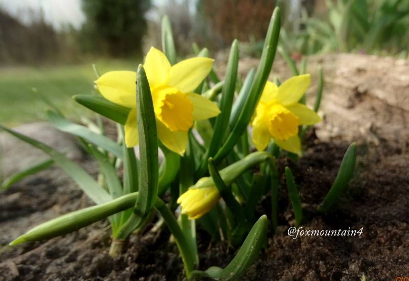Po całodziennych opadach pojawiła sie nowa grupa żonkili, spóźniona, ale bardzo dynamiczna.