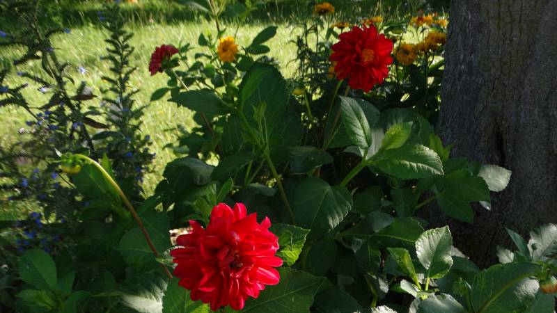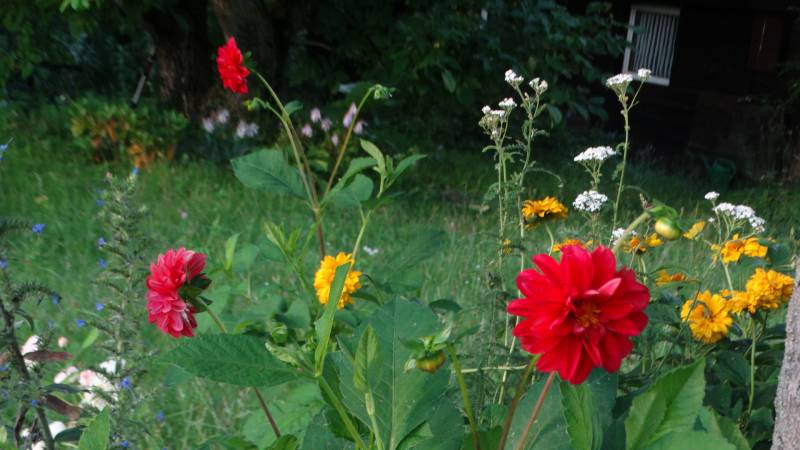 Jest też nowe miejsce dla dalii, długo szukałam wsadzając tu i tam, choć te akurat czują się tu w miarę dobrze i mają wiele takich miejsc
