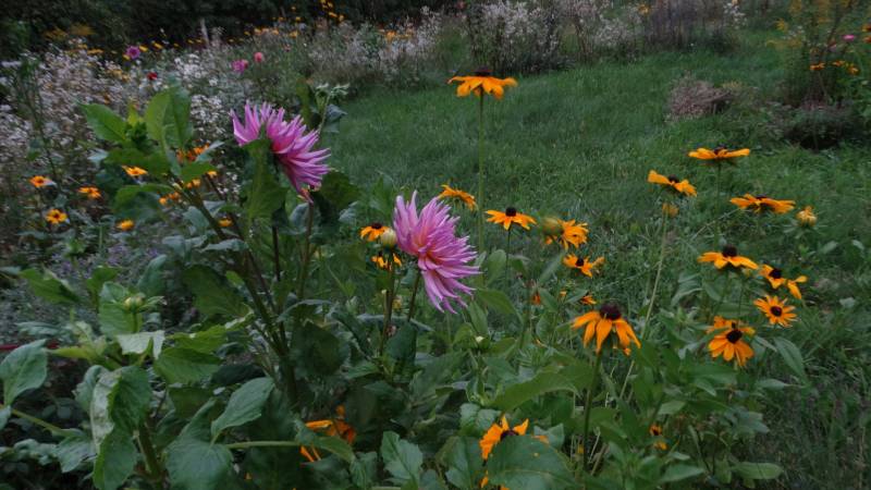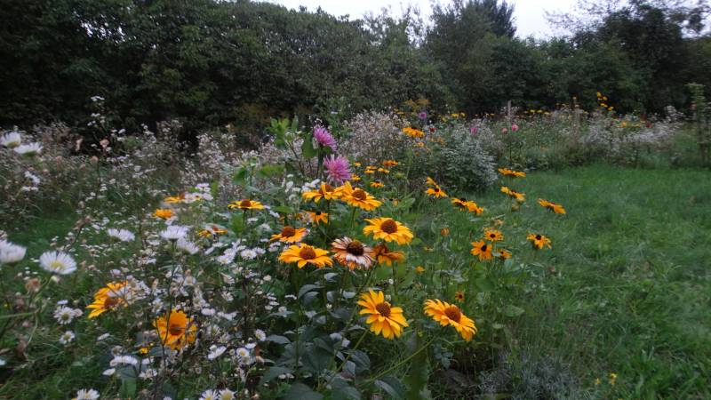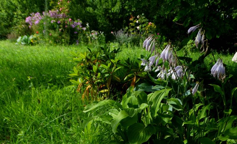 Łąki przechodzące w bardziej zorganizowany ogród, kilka dzikich widoków i kilka detali