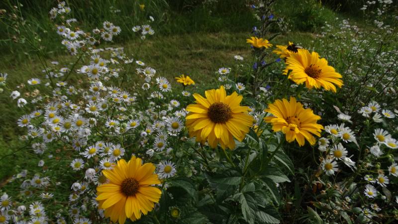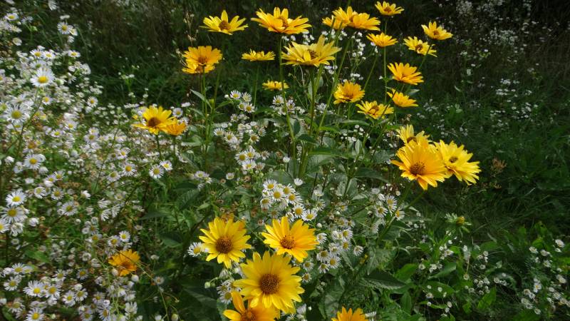 Słoneczniczki szorstkie bardzo łatwo się rozsiewają, krwawnik trochę słabiej ale też się rozsiewa.
