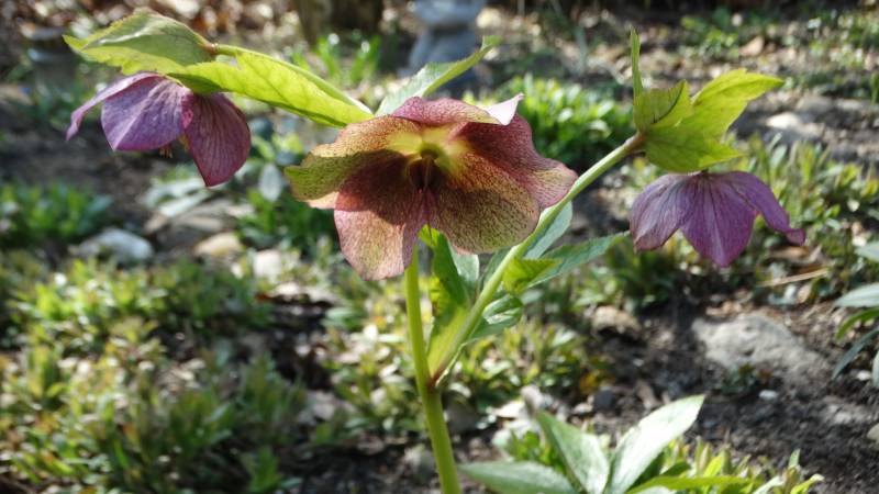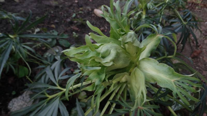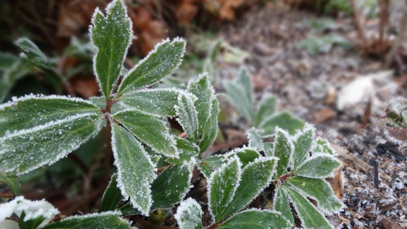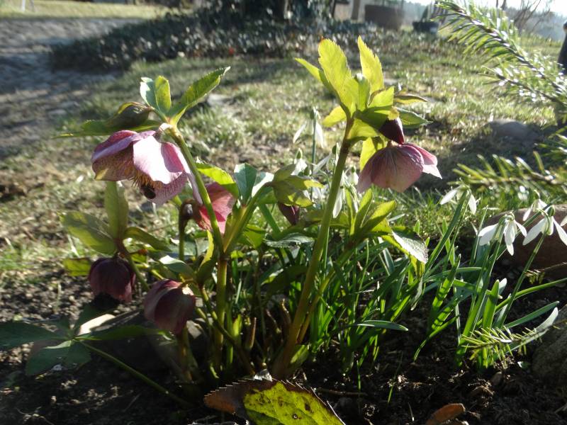 Pogoda się ustabilizowała od -4 w dzień do -6 w nocy, teraz ten nieposprzątany ogród bez okrywy śnieżnej sam siebie chroni i otula przed mrozem. Nie wszystkie ciemierniki oklapły.