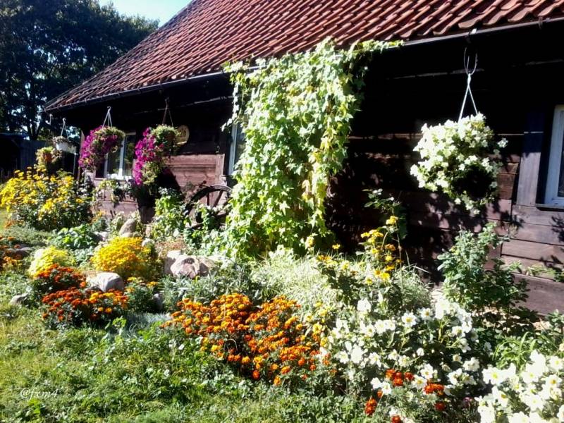 Stara karta od telefonu i wspomnień czar. Pierwsze lata w zagrodzie, aksamitkowy rok, dzisiaj już nie do powtórzenia, ze względu na plagę ślimaków, których wcześniej nie było i które je uwielbiają i słabą jakość nasion. Żadne nasiona z 5 paczek aksamitek nie wykiełkowały w tym roku.