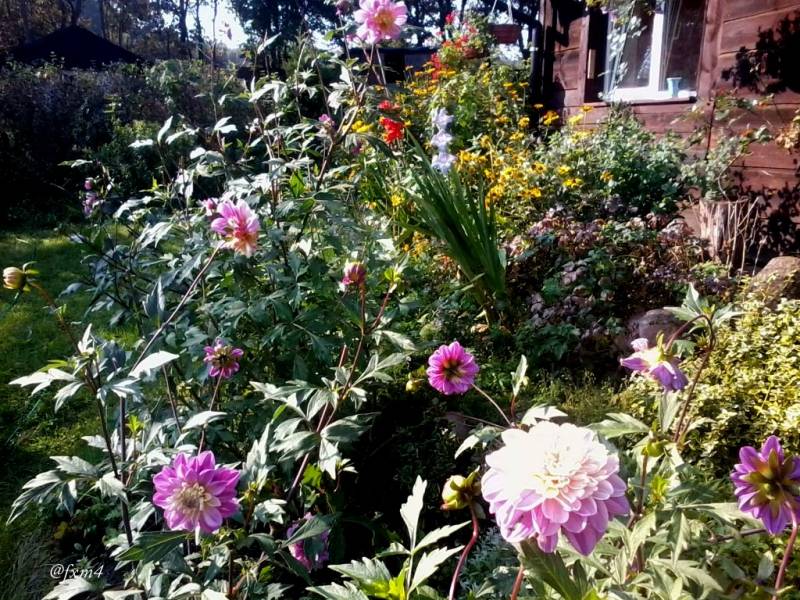 Zakupione na lokalnym targu dalie miały być niższe, robią wrażenie zdezorientowanych, ogólnie wszystko, co wetknięte do ziemi rośnie sobie tu i tam, tak było, to już nie wróci