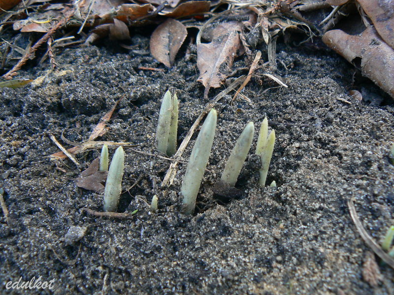 wiatr zdarł całkiem liście z rabat i odsłonił jakieś kiełki - chyba irysy think: