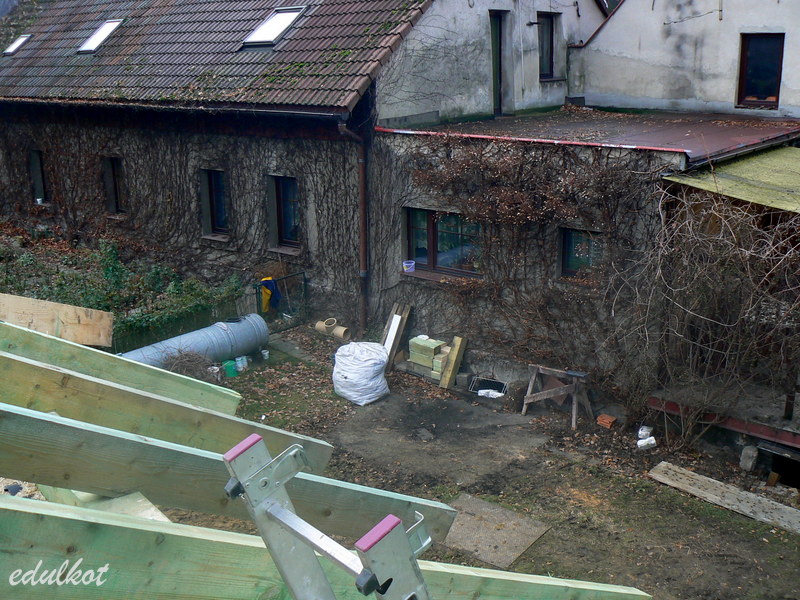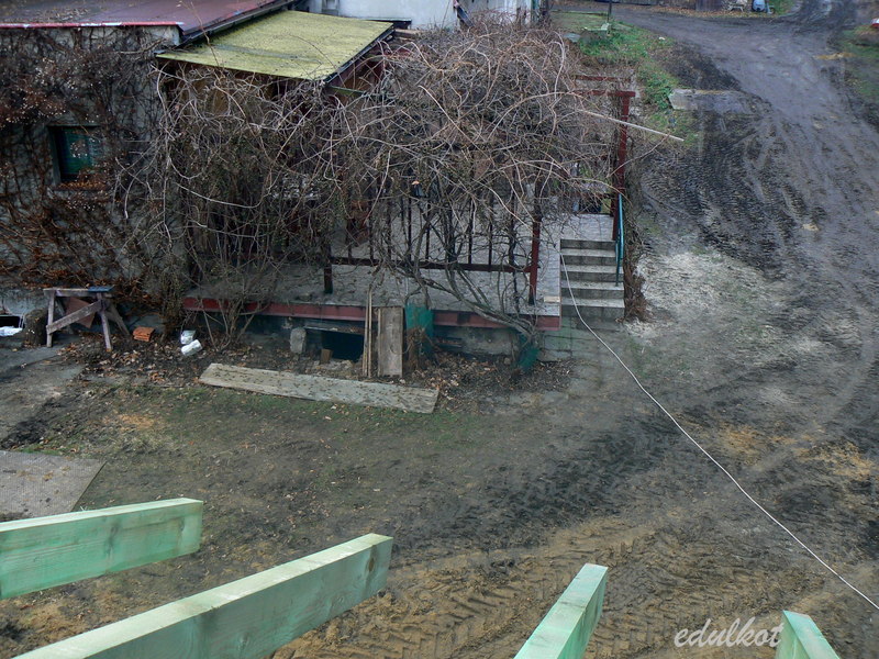 na północ przy ogrodzeniu - tu mają stanąć domek ogrodnika, garaż, miejsce na opał i kojec dla psa