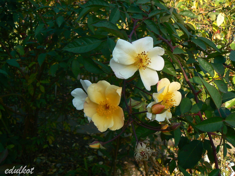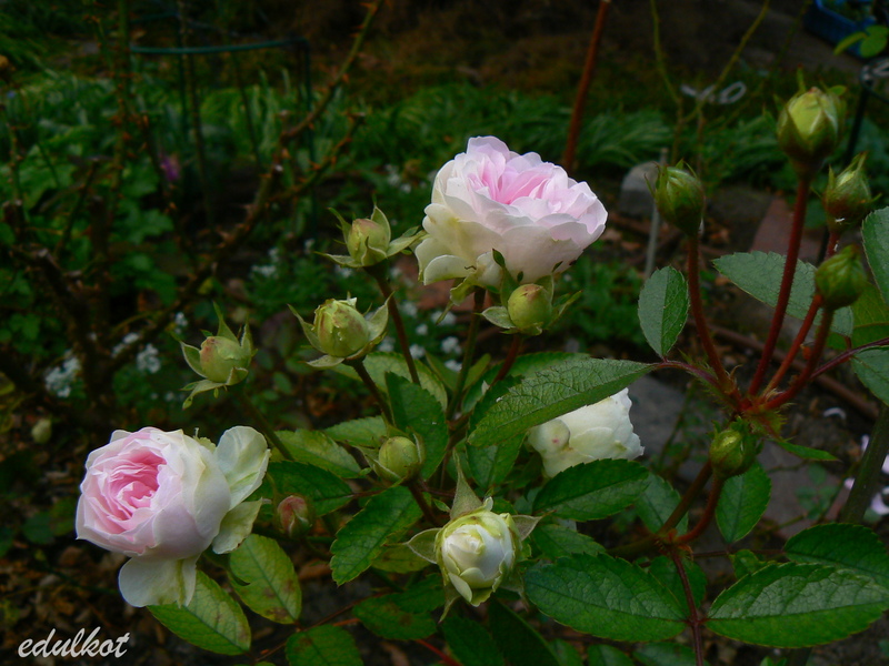Miłko te róże które wymieniłaś jednak wymagają usuwania przekwitłych kwiatów, Darlow's Enigma zawiązuje owoce jednocześnie kwitnąc i ciągle rośnie :kocham