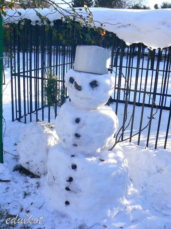 U mnie rano leciutkie 0*, przyprószone jakąś mąką, teraz 3 na plusie i zupełnie szaro. Na takiego przystojnego bałwanka pewnie nie będę miała szans tej zimy, :nie a tak marzę o puszystej kołderce dla moich roślinek. :(