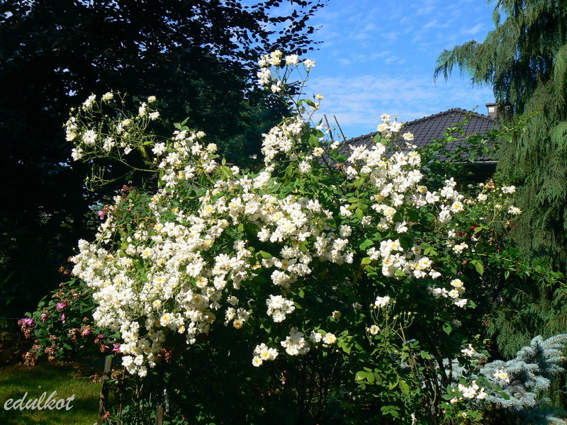 wiosną 2017 musiałam ją mocno przyciąć, ale dała radę zakwitnąć w lipcu, ona zawsze kwitnie w lipcu kiedy inne już są po