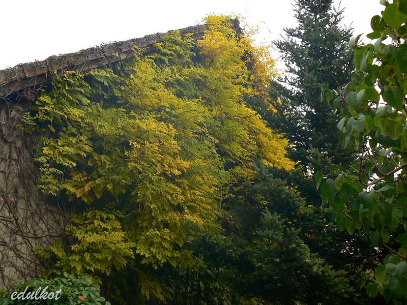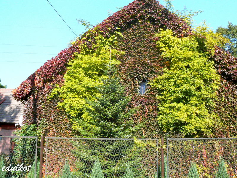 październik - wyraźnie widać ile ściany które pnącze zarosło