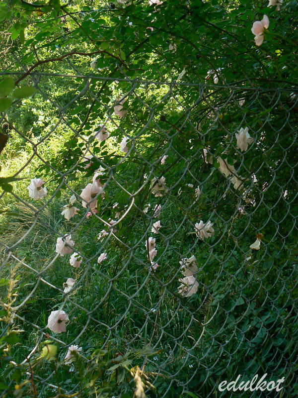 De la Grifferaie ponieważ to prawie dzikuska to ma za zadanie zarosnąć siatkę, powoli jej to idzie jak na razie